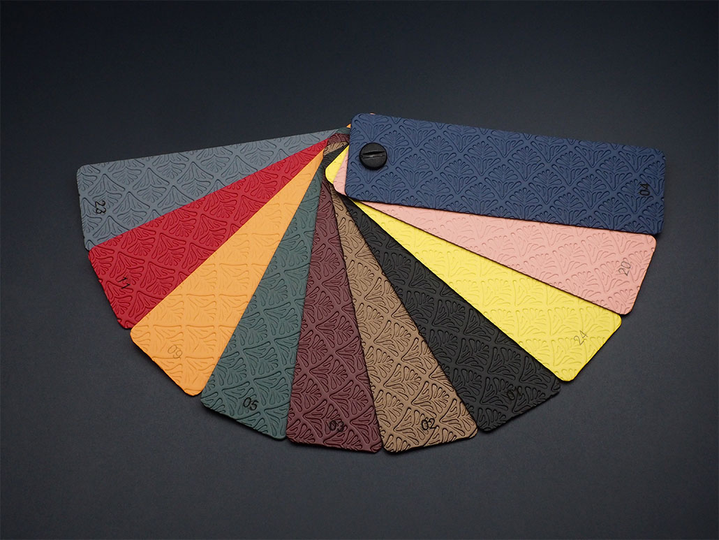 Az általunk kínált termékek anyagválasztéka a finom tapintású papíralapú műbőrtől a valódi bőrön és műbársonyon át a nyírfáig terjed. Számos termék többféle anyagból is elérhető (önálló cikkszámok alatt), de vannak cikkek, melyek csak meghatározott anyagminőségben kaphatók. A legtöbb anyag pedig több színben is rendelhető.